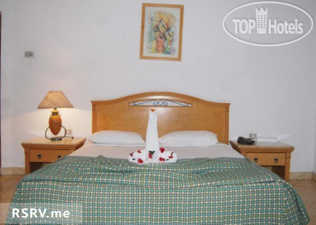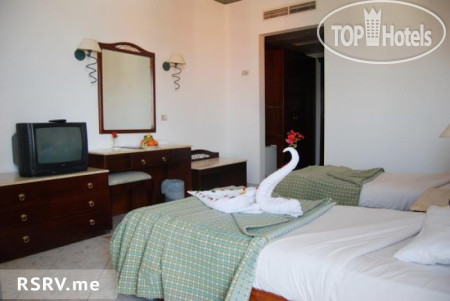 Уборка номера - ежедневно, воду приносят, в эти же бутылочки можно наливать воду в барах. Номера старенькие, двери скрипучие, очень шумные. Взяли масло в столовой, шприц был с собой, смазали двери). Нет напольных полотенец, половая тряпка, привезенная с собой, очень выручала (обратно, конечно, не повезли). Один раз вернулись в номер, в туалете пар - сорвало шланг горячей воды под мойкой. Воду перекрыли, шланг нам заменили в течение часа, довольно быстро по египетским меркам.