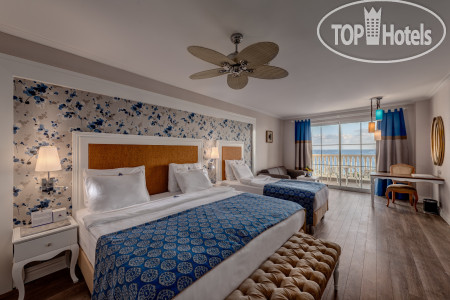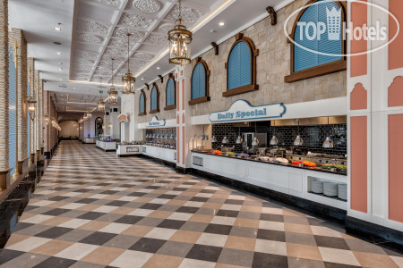 Питание. Очень скудное , очень мало еды. Ни разу не было баранины, рыба всегда одного вида, говядины нет. Питание не понравилось во всех отелях, где я отдыхала было очень хорошее разнообразное питание. Отвратительные невкусные гамбургеры, супы вообще ужасные несъедобные. Ни разу не было красной рыбы ни Гриле и мяса. Очень и очень скудное питание. Кофе в кофейне отвратительное, на бутербродах тараканы. Вообщем отель с тараканами. Вай фай по территории отеля не ловит, то ловит только в лобби и все. Отношение к русским туристам плохое. Никакой анимации нет. Слушали музыку негромкую на пляже к мужу подошел охранник и заставил выключить музыку. Позвонил работнику работнику гастролейшн которая стала угрожать что вызовет жандармов. Музыку выключили но осадок остался неприятный. Заход в море неплохой, но вода грязная, на поверхности воды какая то пленка. Пляж не плохой но не сравнить с пляжами Белека. Лежаки неудобные, зонтики старые. Приходилось вставать рано утром, чтобы успеть занять места на пляже . Обслуживание в лобби баре по куар кодом, но ждать долго. Я ожидала лучшего от данного отеля .