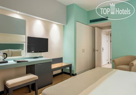 Периодически подходил на ресепшн и интересовался наличием освободившихся номеров... В 12 обычно выселение, и мне уже сообщили, что номер прибирают, попросили еще полчасика подождать ! И вот в 13:40 мы поднялись в номер, все как в ваучере, с видом на море. В номере просторно, чистенько, кондей работает тихо и без перебоев, управление на стенке, все просто и понятно. В холодильничке полный набор ))). Что еще по номеру, ах да, в фирменных коробочках всякие штучки, салфеточки, зубные пасты с раскладными щёточками(с собой из дома можно не брать), бритва с гелем в пакетике, Дозаторы с мылом, гелем-шампунем, кондиционером. Вода, круглый день холодная и горячая. В номере куча выключателей, подсветки всякой, на любой вкус, нужно долго привыкать, чтоб понять, что и где вкл/выкл.