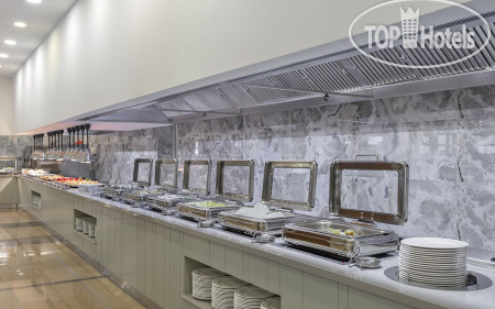 6. Рестораны - 4,8. Ассортимент основного ресторана в целом сопоставим с многими другими отелями. Завтраки одинаковые, но на на любой вкус. Отдельно есть детская зона с детским питанием. В разных углах ресторана стоят столы с кофемашинами, чаем и свежевыжатым апельсиновым соком, а также колой, фантой, спрайтом и негазированной водой. Помимо сахара у кофемашин стоит сахарозаменитель. Очередей практически не бывает. Раним утром, вообще пусто, а в час пик 2-3 человека, не более. На обед всегда 2 супа (разные в разные дни), много мяса, гарниров, выпечки, салатов, овощей и фруктов Помимо основного ресторана днем в двух барах можно пообедать. Там уже не Шведский стол, а заказы по меню (гезлеме, шаурма в разных видах, кебаб, пицца, картошка фри, бургеры, десерты, фрукты). Все в большом объеме и все вкусно. Подается быстро и быстро убирается). Вообще, во всех ресторанах работа официантов очень оперативна. Вечером вы идете либо в основной ресторан, либо в А ля карт. Мы были в Мексиканском – очень атмосферно и вкусно. Рекомендуем. Через день в основном ресторане тематические ужины с внесением соответствующего разнообразия в меню: понедельник – итальянский, среда - рыбный/восточный, пятница – мексиканский, воскресенье – турецкий. В общем, голодными не останетесь. Креветки в разных вариантах (запеченые и в салатах) были 3-4 дня в неделю. В рыбный день добавлялись еще вареные крабы и большие креветки. Но не обошлось и без курьеза. На протяжении нескольких дней я не могла понять, как они так варят яйца, что 3-минутное яйцо всегда в крутую сварено. А потом поняла, что кто-то упорно путает надписи. У 5 минутных яиц всегда стояла надпись «3 минуты», а у 3 минутных наоборот. Разговор с менеджером ресторана ни к чему не привел. Поэтому каждое утро пришлось расходовать в два раза больше яиц, чем я съедала (приходилось брать два разных яйца, разрезать их и далее брать то, которое нужно было мне). Грустно, но факт. У кого-то проблема с цифрами. И с розовым вином на ужин не всегда удачно все складывалось. Иногда приносили не понятно что, смутно напоминающее смесь вина и портвейна. И только после просьбы заменить на нормальный напиток мне приносили хорошее розовое вино. В середине отпуска мы уже поняли, что на ужин лучше наливать вино себе самим из известных бутылок, красиво стоящих в вазах со льдом в начале входа в ресторан.
