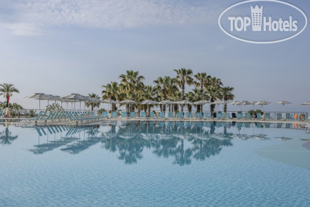 В отеле есть большой бассейн, расположенный прямо напротив главного выхода, как часто и бывает. Ничего особенного сказать про него не могу, обычный бассейн, вода днём прогревается сильно и кажется очень теплой. В этом бассейне проходит вся водная анимация, по краям есть такие закругления с гидромассажем, есть что-то типа душа Шарко. Глубина бассейна 140 см. Со свободными местами всё нормально, что-то свободное всегда найдётся. Рядом с ним есть бассейн с навесом для совсем маленьких деток.