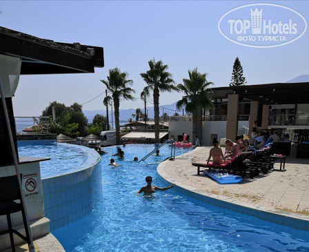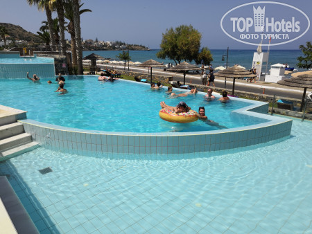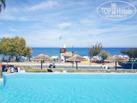 В отеле сейчас отдыхаем. Хороший отель, спокойный. Завтраки однообразные, но выбор хороший, на 2 недели предостаточно, утром молочные коктейли, смузи, и др. Ужины вообще супер, много мяса, отличное мороженное. Мы на HB. На ужин напитки платные, бесплатно только вода. Проживаем в номере 218 на 2м этаже с видом на море. Нам нравится. Ездили на санторини, очень красиво и жарко... И в аквапарк watersity.