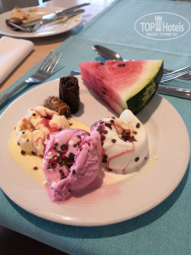 Работа поваров в главном ресторане заслуживает отдельного внимания! Все очень вкусное и свежее. Порадовал прилавок Fruit bazaar , где можно взять целые фрукты с собой (ананасы, апельсины, бананы, дыни, персики, нектарины и др. по сезону). Один раз посетили а ля карт ресторан. Все на уровне, отведали морепродуктов.