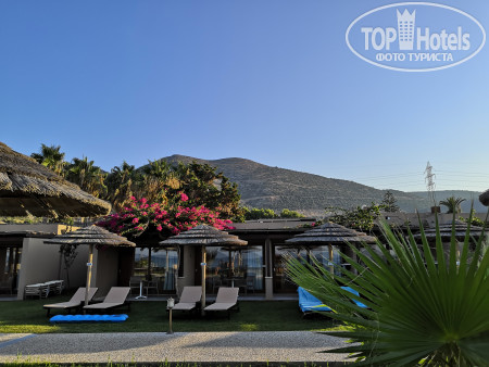Номер нам достался в основном здании, где ресепшн. Но это нас не смутило, ибо все номера комфортно обустроены, современная техника и декор. Так же на территории есть бунгало, некоторые с собственным бассейном либо лужайкой. Повсюду высажены плодовые деревца и цветы.