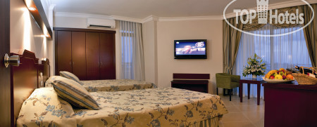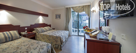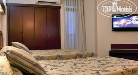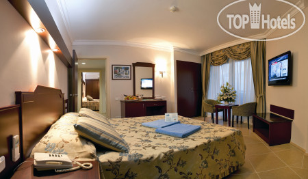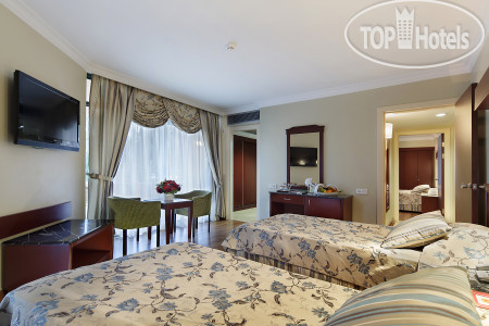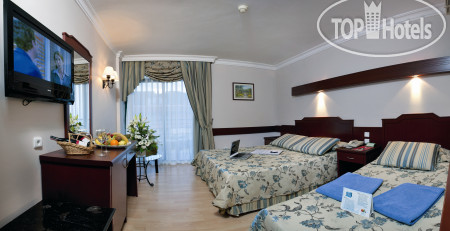 Номер семейный, был как заявлен. По моей просьбе ( писала заранее письмо) дополнительную кровать поставили , там где были одноместные кровати . В номере два балкона. На одном есть столик и 2 стула, сушилка. Нам не повезло, окна были на другой отель и кухню. Там куча вентиляторов , было шумно и от кухни пахло. Но мы в номере только ночевали. Есть минибар: нам его пополнили не сразу: вода, пепси, фанта, сок, пиво .Потом его пополняли, не каждый день. Поэтому брали в оду в баре. Номер немного тесноват. Уборка ежедневно, иногда дети отказывались, так как приходили в пик жары, когда они отдыхали в номере. Меняли полотенца, даже когда было не нужно . Для 4 человек поменяли одеяла на вафельные простыни, одно осталось не сменено, полагаю, что белье там не меняли, потому что кровать была всегда заправлена, как дочь заправляла. На остальных делали украшения из покрывал. Были трудности дверкой душа, но решили эту проблему сами . Полотенца для пляжа сразу в номере. Там же их оставляешь при выезде , но смена за деньги. Мы не меняли.