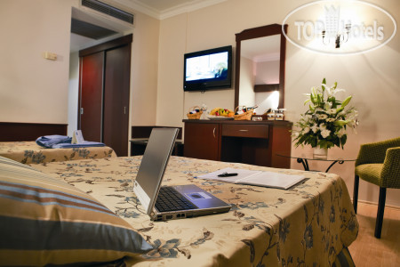 После завтрака мы подошли на ресепшен, нам сказали подойти через час, возможно но ер будет готов. Мы посидели в лобби баре, на уютных и удобных диванчиках, через час подошли и нам дали номер, на 1 этаже 151. Номер маленький, с видом на соседний отель и боковым видом на море. Шкаф неудобный, нет полок, вернее есть, но одна. Разобрали вещи, помылись, заявленных тапочек не нашли, но халаты были. Полы были сильно грязные, походив по номеру посмотрели на свои ноги и обалдели. Так же не работал пульт кондиционера из-за севших батареек. Собрались, пошли на море. Кстати пляжные полотенца при заселении уже в номере и до конца отдыха ими пользуешься, если хочется чистое и свежее, то смена стоит 1 евро. Мы не меняли. На ресепшен муж сказал что полы грязные и нет тапочек, после того как вернулись в номер, полы были помыты и поменяны батарейки в пультах, так же принесли тапочки. На протяжении всего отдыха, каждый день у нас прибирались и меняли полотенца, хотя у них висит табличка в ванной, где говорится, о том что если вы хотите поменять полотенца, киньте их на пол или в душевую кабинку. Мы всегда вешали их на место, но нам все равно их меняли. Так и постельное белье, не в каждый день, но через день. При заселении у нас были одеяло, очень удобно, мы включали кондиционер на ночь и спали под одеялом, но за день до выселения нам зачем то принесли два покрывала, а одеяло убрали. Так как я простыла на третий день отдыха и мы были обгоревшие, спать под вафельным покрывалом не особо комфортно, мы попросили вернуть нам одеяло, по возвращении в номер обнаружили что нам принесли еще два покрывала, непонятно. Была ситуация, после очередной уборки, я вернулась с моря и обнаружила что нет больших полотенец, сходила на ресепшен, через 10 минут горничная принесла полотенца и очень извинялась) Еще по номеру, нам повезло, у нас с одной стороны не было вообще соседей, так как там было какое- то помещение персонала, а с другой стороны из номера мы никого не слышали, он был удален от нашего. Единственное что один раз мешали орущие дети ночью в лобби, так как номер находится у второго света, внизу сидела пьяная компания и их дети носились и кричали, не смотря на позднее время, около часа ночи. Я спустила на ресепшен, сказала что нам мешают спать, через некоторое время шум прекратился) работу ресепшен можно очень высоко оценить, всегда все исправляли, кроме одеял)