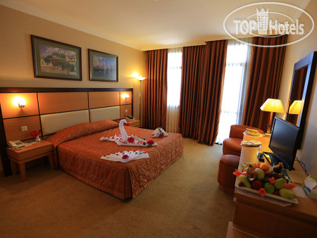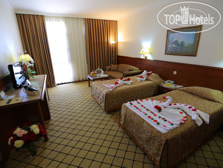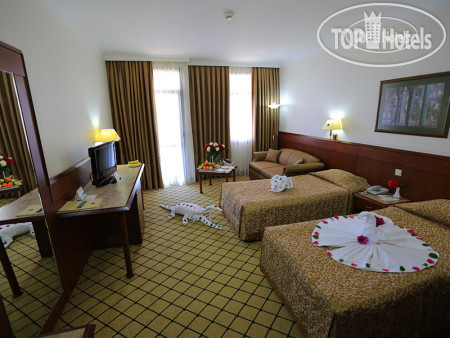 Отдых удался! После завтрака, обеда и ужина мы наших детей не видели! Прекрасная анимация!!! С детьми занимаются по полной программе! Детки сами просятся в детский клуб! Им там очень интересно! Спасибо большой аниматорам! Прекрасное питание, разнообразие блюд поражает! Сладости стольких сортов, что глаза разбегаются, мороженое очень хорошее, вкусное и тоже много разного! Очень много разных фруктов: арбузы, дыни, очень вкусные сливы, нектарины, персики, груши, бананы, яблоки. Немного подкачал сервис в номере: халатов не было, большие полотенца забрали, а чистые не принесли (правда такое было только один раз) пришлось идти на рецепшен, так как в номере телефон оказался без проводов (???), на балконе вообще ни разу не убирали (несколько раз был сильный ветер и нанесло грязи на столик и кресла), в комнате и санузле тоже ни разу не мыли полы, убирали только мусор из корзин. Мини бар пополняли ежедневно, спасибо! Горячая вода в душевой была всегда. Очень хороший спа центр! Два хамама, большая сауна, очень тёплый большой крытый бассейн - это всё бесплатно. Массаж и косметические процедуры платные. В общем, нам очень понравился этот отель, мы вернёмся!!!