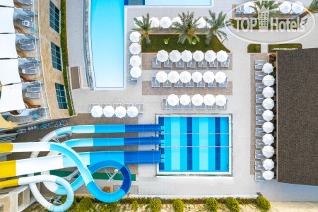 Рядом есть детский бассейн с горками.