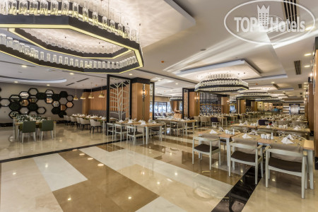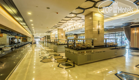 Завтраки сколько я отдыхал ну завтрак на двоечку(2)ещё никогда не было такое чтобы я не притрагивался к завтраку,фрукты в часности арбуз дыня с привкусом позавчерашнего дня,обед,ужин однообразны до ужаса ну может на 3чку,лично как готовят в Турции чечевичный крем суп просто сказка в тут за 10 дней я его не разу не видел,САЛАТЫ:РЕБЯТ море продукты за дней 10 креветок чищенных увидел только 1раз и то в килограмаже если взять ну кг 4 максимум было,для такого отеля вообще не о чем,кальмаровый салат так заливают оливковым не рафинированным что все желание отпадает его есть горчит ужасно,Суши(роллы):обращаюсь к шеф повару вяжись со мной если я буду в Турции специально приеду проведу мастер класс по готовке роллов,КУРИЦА:Спинки на гриле когда готовите проверяйте чтобы не было перьев все переворачивается когда такое вижу,кстати был борьщь это какойто п....у,столько хороших продуктов пускают в мусор ,на самом деле можно приложить минимум усилий максимум с этого получитьреальный ультра все включено, хотя ультра все включено 🥴слишком громкое заявление.единственное персонал на 5ку,и то частично,на фото при выборе отеля есть фраза ожидание и реальность поверьте реальность вас огорчит,но если это ваша первая пятерка вы будете довольны надеюсь.кстати если вы хотите поройттись по магазинам то тут тоже беда вам придется ехать ну как минимум минут 20 ,до более менее адэкватного раена с магазинами,так как по близости ничего интересного нет.вам либо ехать в Белек ЛЕНД ОФ ЛЕГЕНДС там много торговых рядов да и чисто погулять приятно будет,либо парится тупо в отеле.