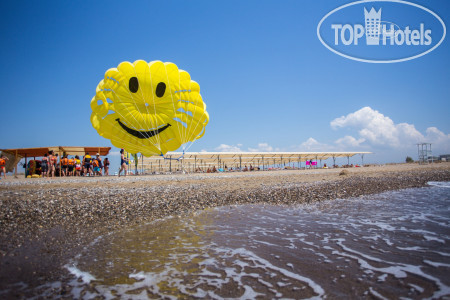 В целом отель не плохой за такие деньги,но и в правду отель подйзношен,второе и самое важное море: вода не чистая а мутная и грязноватая а все из за того что с утра и до вечера волны каждый божий день как будто тежело сделать волнорез(тебя мотает как в стиралку),грубо говоря приехал на море а провожу его в бассейне😔в сравнении с Кемер там вода прозрачнецшая волн нет даже приятно в воде полежать у берега ,а тут тебя мотает и балансируешь как акробат на канате,вечером на представлении около сцены бар, барменов много, но обращаясь иногда игнорят просто.
