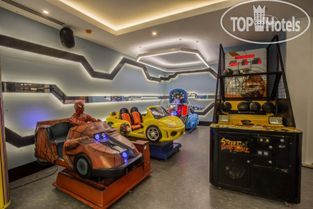 Отель без территории, только внутренняя часть с бассейном. В самом отеле, на этаже Lobby, очень много локаций, где можно уютно посидеть с напитками. Есть место для настольных игр и теннисный стол с ракетками. Есть большая терраса с диванами и столиками, где можно курить. Там же можно взять кальян. Места всегда и везде хватало всем желающим. Лифтов несколько. Никогда не было заторов с лифтами. Вообще, обратили внимание, что логистика в отеле хорошая, продуманная. Респект менеджерам. Напитки наливали -не жадничали))) Были импортные: виски Балантайс, ром Гавана клаб, джин тоже какой -то ирландский. В лобби баре варили Турецкий кофе. А вот вино не понравилось ни белое ни красное…