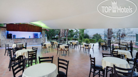 Ресторан в отеле имеет две зоны, внутри и снаружи достаточно просторно и всем хватает мест. Есть зона с грилем, она находится снаружи. Также снаружи можно курить в самом ресторане. В отеле есть три бара: лобби (основной) бар, бар на пляже и в зоне отдыха, где проходит вечерняя программа. Еда очень вкусная, разнообразная, можно выбрать на любой вкус, голодным не останешься.