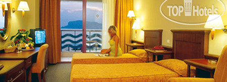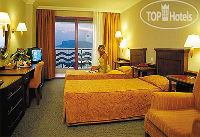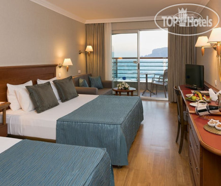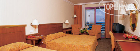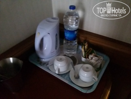 Номер большой, одна двухместная кровать, одноместная кровать, между кроватями стояли тумбочки и еще был диван со столом. В номере был минибар: Вода с газами и без, Coca-cola, Fanta,пиво Tuborg Gold. Телевизор с 3 Российскими программами.
