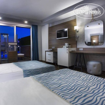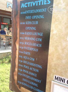 Отдыхали в данном отеле две недели во второй половине июля составом 1 взрослый и 2 подростка (14 и 16 лет). Если коротко, то надо рассматривать этот отель как неплохую бюджетную пятерку, либо хорошую четверку и, конечно, не ультра все включено. Данная сеть отелей «практикует» (скорее правильнее сказать «разводит» на деньги при заселении). Конкретно в этом отеле, если у вас стандарт, то вероятнее всего вас заселят в домиках в самый худший вариант, а далее пойдут предложения о переселении в главный корпус, либо в другой отель этой сетки, если там будут места. А дальше все зависит от вас как вы будете торговаться. Нам сначала загнули 13 евро за сутки на номер чуть больше стандарта в основном корпусе, я сглупила, нужно было сбивать цену до 40-50 долларов, но усталость сыграла свою роль в итоге сошлись на 70 - считаю это дорого.