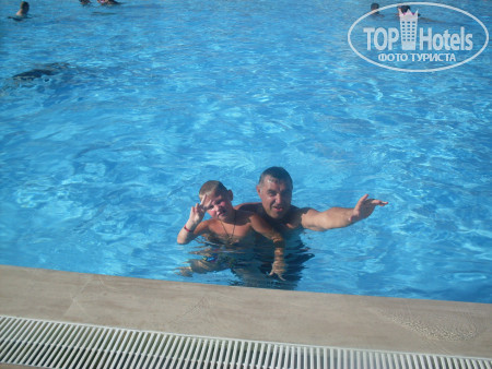 У бассейна не загорали за две недели ни разу, в семь утра уже все занято полотенцами, да и ладно, на море места полно. Горки при отеле дети не заценили, отбили спины и попы, т.е. скатились по разу и больше туда не ходили, все остальное время катались острове.