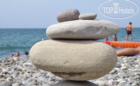 Берег каменистый, как и на всем побережье, с этим надо просто смириться)