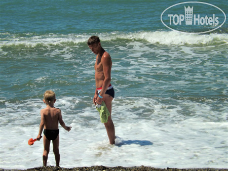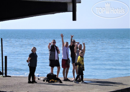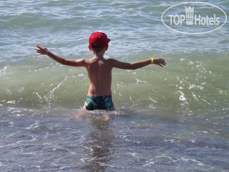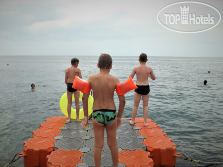 Если говорить о море, то хотелось бы побольше зонтиков на пляже, потому что уже к 10 утра солнце никого не жалеет, а вот лежаков под навесами и зонтиками недостаточно для отдыхающих. А так, все очень даже достойно. Для желающих окунуться на глубину сделана дорожка, небольшой мостик сделан прям у берега. Но он маловат по длине.