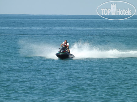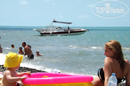 В баре на пляже утром 2 часа модно выпить чай, сок и поесть блинчики, мороженое. В баре у бассейна также пару часов работает бар с разницей только в вафлях вместо блинов.