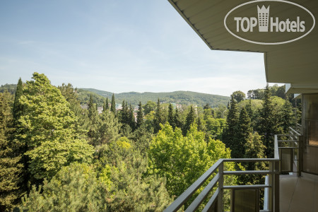 Территория санатория чистая, постоянно делается уборка сухой листвы, по деревьям скачут белки. Очень достойный отель.