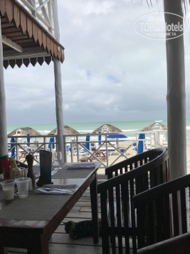 Пляж чистый, широкий, мест для всех хватает. В середине него есть бар. В нем же, в обед, можно перекусить по меню. Вечером же он работает как а-ля-карт ресторан. С правой стороны, если смотреть на океан, есть зона даймод со своим баром и обеденной зоной. Там обычно мало людей и пляж там уже.