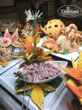 Рестораны, бары: общий ресторан в нем много разнообразной еды, всегда можно найти что поесть, рестораны алякарт-по меню, в принципе не плохо, еда может и не сильно разнообразная, но нам понравилось, что не надо ходить и набирать, там во всех ресторанах была рыба, иногда белая иногда красная, вот ее я и заказывала, в общем ресторане мы не часто кушали, заходили к закрытию за фруктами и вкусняшками с чаем. И да, тут был чай, что является редкостью для кубы. Обслуживание было быстрое, возможно не такое быстрое как в других странах, но если сравнить с другими отелями Кубы, то можно сказать, что реактивное. Столы всегда были убраны и сервированы, а если вы сели за ненакрытый стол, то его тут же сервировали. Такого нет в других отелях, да и еды в других отелях нет, а тут есть. Наш консьерж молодец, часто заказывал столики на ужин в рестораны, что бы мы приходили к определённому времени, а не стояли в очереди. Нравился нам джаз бар, там можно было всегда найти местечко, посидеть в тишине, послушать фортепианную музыку. Можно было посидеть на ресепшене и в лобби в качельках вместо стульчиков. Кофе готовят отличный, как я люблю, главное рассказать что ты хочешь, эспрессо я получала и на завтрак и в обед и на пляже и в лобби. И еще тут были свежевыжатые соки, особенно вкусный был манговый. Мы были в сезон манго.