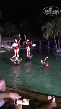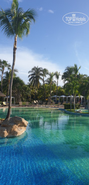 Территория отеля: большая, очень ухоженная и зеленая, с большим количеством бассейнов и ленивых речек, переходы между корпусами и по всей территории - по мостикам на сваях над водным пространством, с удобным расположением баров и ресторанов от всех корпусов, тк отель вытянут вдоль побережья океана, а все развлечения, включая амфитеатр - в центре, звук не мешает людям отдыхать в номерах.