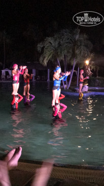 Анимация на пляже слабенькая. Растяжка и 10 минут танцев утром. У бассейна обычно веселее, но не очень понимаю людей которые с таким великолепным океаном сидят в бассейне. Ну да ладно. Вечерние шоу стандартные, как и во всех других отелях – песни и пляски кубинских ребят и девчонок.