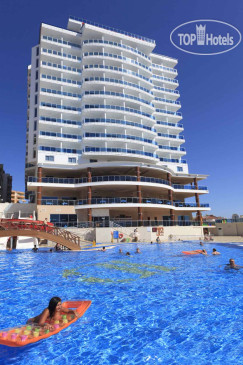 Пляж хоть и через дорогу, но удобный переход и регулярно ходит лифт прямо к морю. На пляже чисто, лежаков хватает, море прозрачное, вход удобный. У бассейна тоже отличная атмосфера — музыка, бар с прохладительными напитками, весёлые аниматоры создают позитивное настроение.