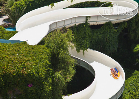 Отдыхали в середине августа 2024 г. Нас как-то пугали, что в это время температура в Анталии может подниматься до 40 градусов, но последние 3 года все было спокойнее - не выше +35, а в среднем 32-33 днем. Отель понравился. Территория огромная, 380 кв.м., если не рекорд, то уж точно в числе лидеров. Правда, конечно, если вычесть футбольное поле и теннисные корты, которые для отдыхающих недоступны, то цифра существенно сократится. Но в любом случае, погулять есть где, много зелени. Размещают в 2-этажных домиках, примерно по 10 комнат на этаже. Домики все практически одинаковые, и расположены на улицах, расходящихся лучами от решепшен по направлению к морю. между этими улицами есть переулки, разрезающие их под острыми углами. Так что с первых дней даже приходилось пользоваться картой, чтобы понять, где находишься, и где остался твой дом. Тут, кстати, на перекрестках эти карты на стендах установлены. И даже с подсветкой в темное время суток.